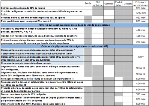 Le GEMRCN fixe aussi des repères pour la fréquence des aliments :