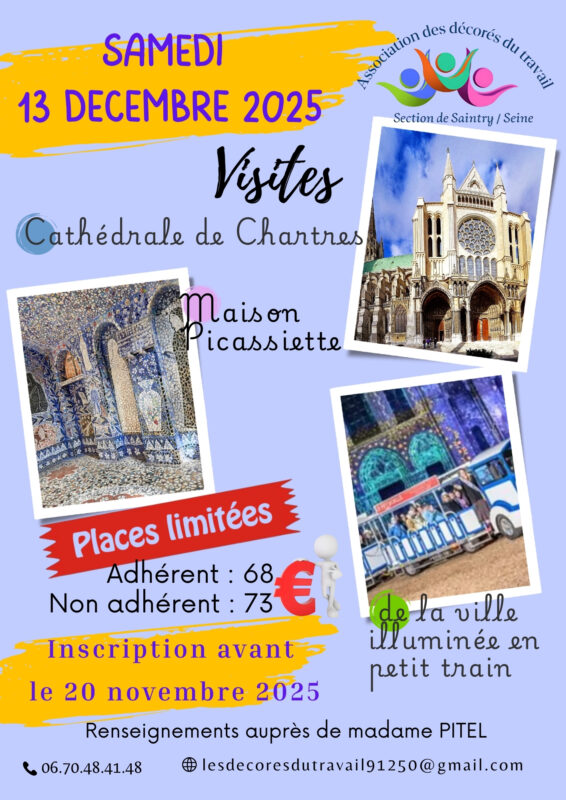Le 13 décembre avec l’Association des Décorés du Travail, Chartres s’illumine comme un conte d’hiver. Dans les ruelles pavées, les façades se parent de couleurs, la cathédrale se métamorphose en fresque vivante, et un petit train blanc et bleu vous embarque pour un tour féerique. Cap sur une journée (et une soirée) qui fait rêver.