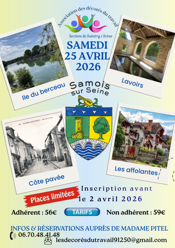 L’Association des décorés du travail – section de Saintry/Seine vous propose une belle escapade le temps d’une journée à Samois-sur-Seine, au cœur d’un cadre chargé d’histoire et de charme.