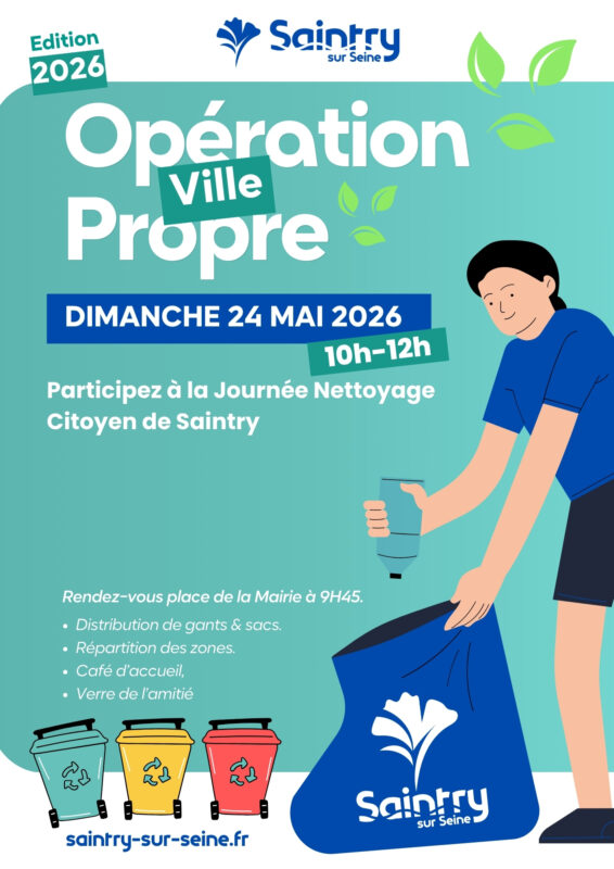 La ville de Saintry-sur-Seine invite ses habitants à participer à une grande Journée de Nettoyage Citoyen le dimanche 24 mai 2026, de 10h à 12h. Cet événement s’inscrit dans une démarche collective visant à rendre notre cadre de vie plus agréable et plus respectueux de l’environnement.