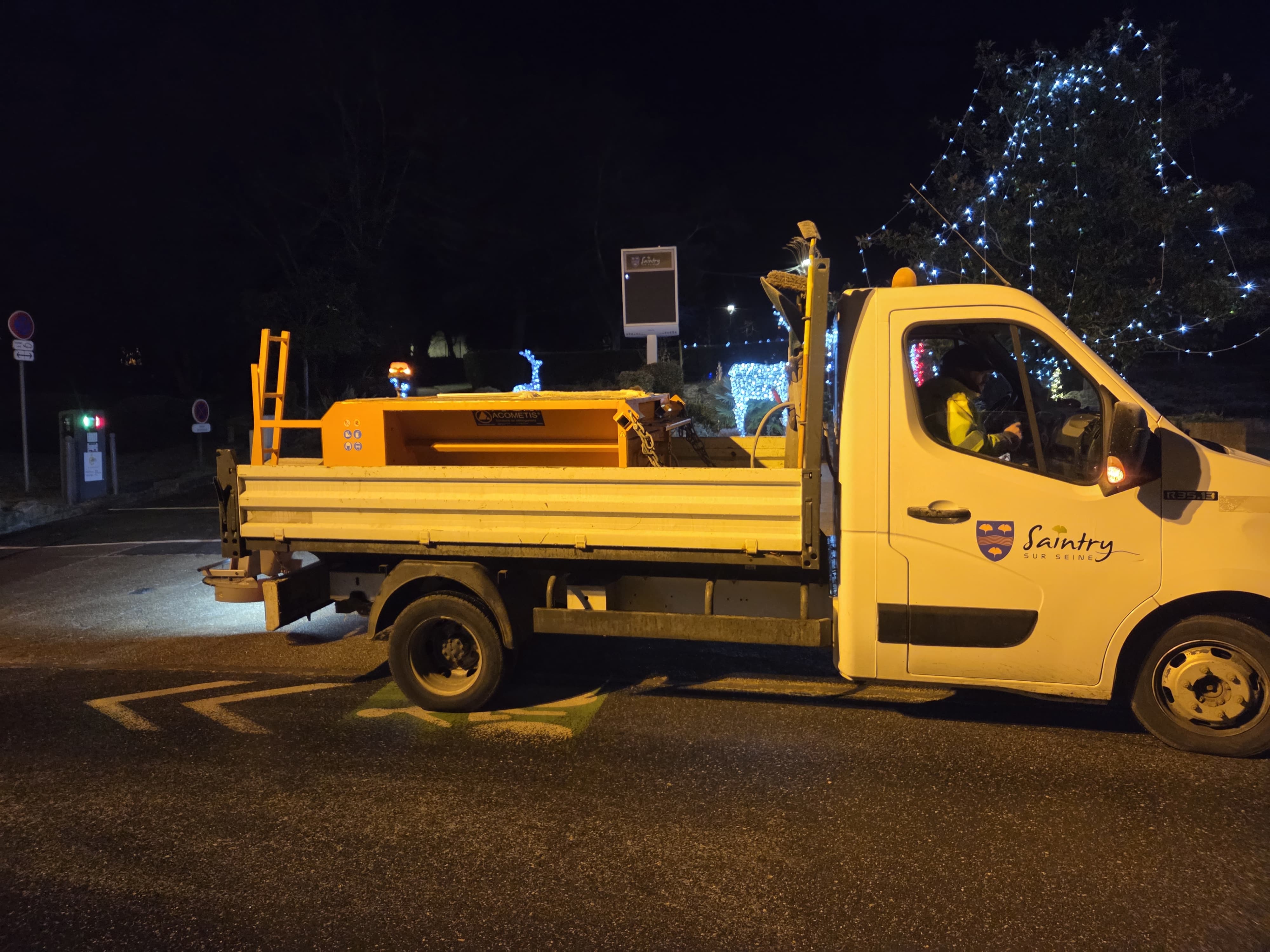 À Saintry, les services municipaux sont pleinement mobilisés depuis le début de cet épisode climatique. Plus de 2 tonnes de sel ont déjà été répandues sur les routes..
